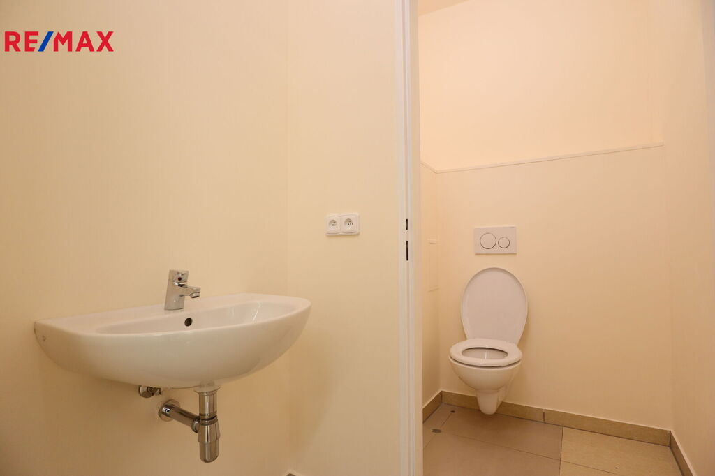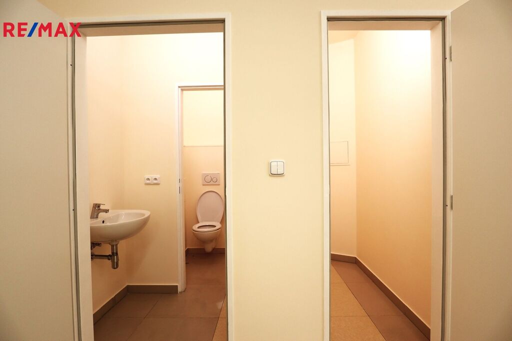 Prostor dále disponuje samostatnou toaletou s umyvadlem a technickou místností. Díky flexibilitě dispozice lze prostor přizpůsobit konkrétním potřebám a podnikatelským záměrům.