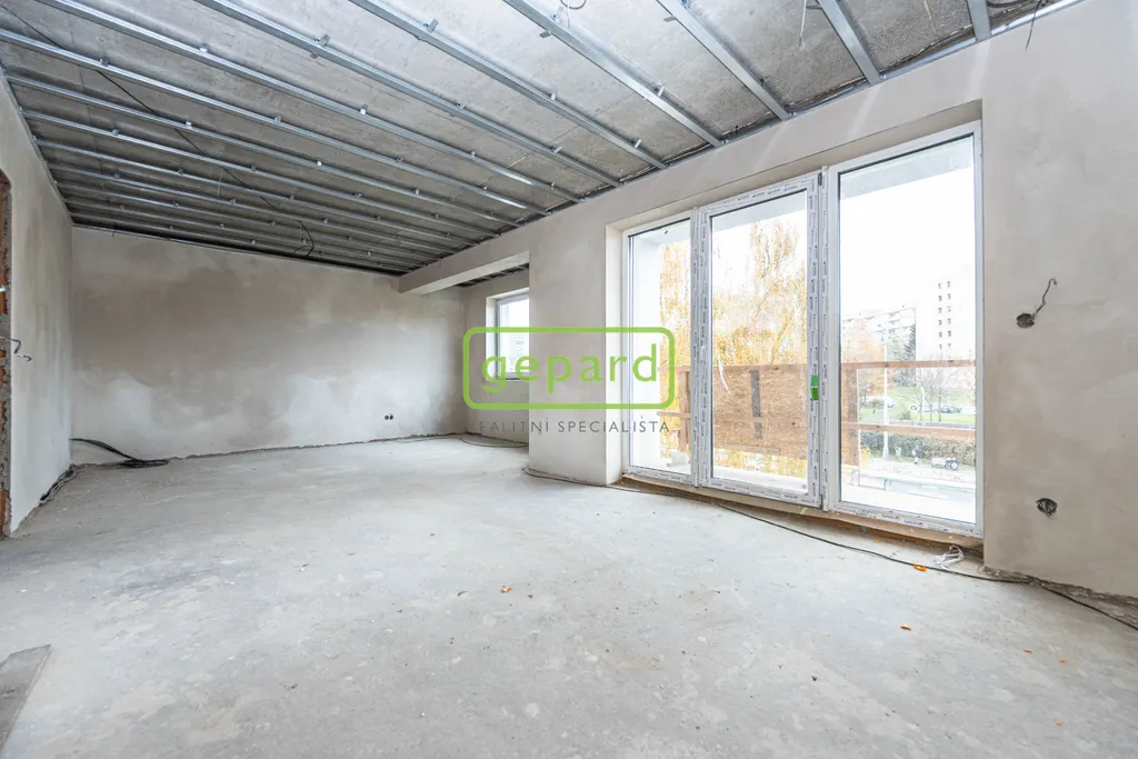 Realitní společnost Gepard nabízí byt v novostavbě 4+kk o velikosti 112,5m2, balkon 9,7m2 se vstupem ze dvou pokojů a druhý balkon 6,2m2 se vstupem z obývacího pokoje, dále 2x venkovní parkovací stání na pozemku, místo v garáži (menší auto, motorka apod.) a sklep 2,8m2 v 1.PP.