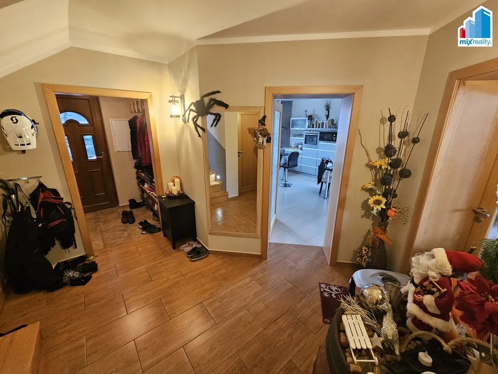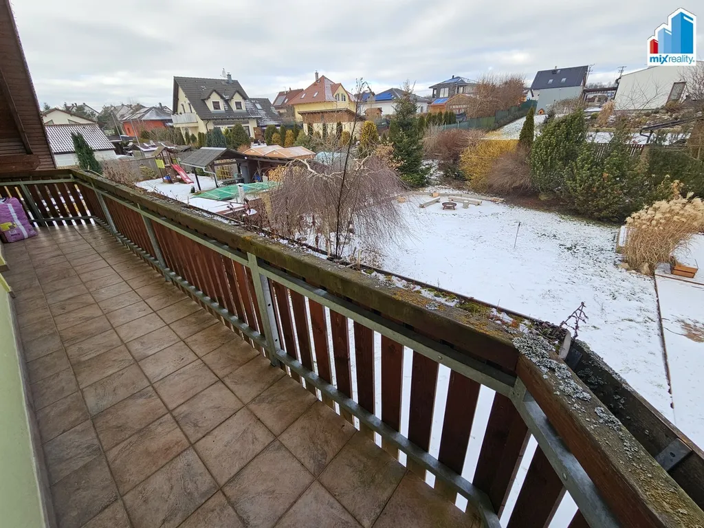 V patře se nacházejí tři pokoje. Jeden z nich je vybaven infrasaunou a další je velmi prostorný – má plochu 36 m². Z jednoho pokoje je vstup do prostorné šatny o velikosti 25 m².