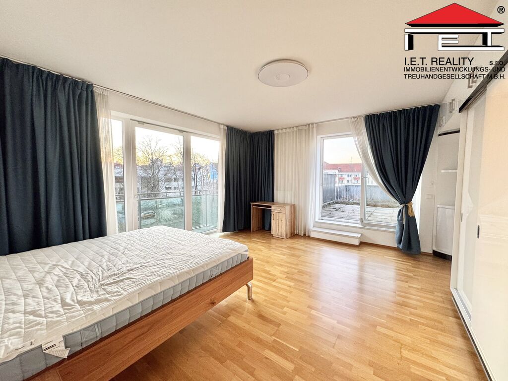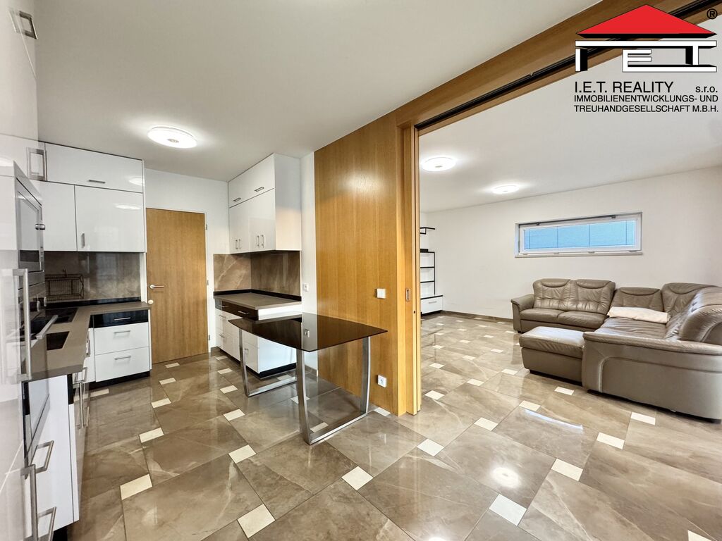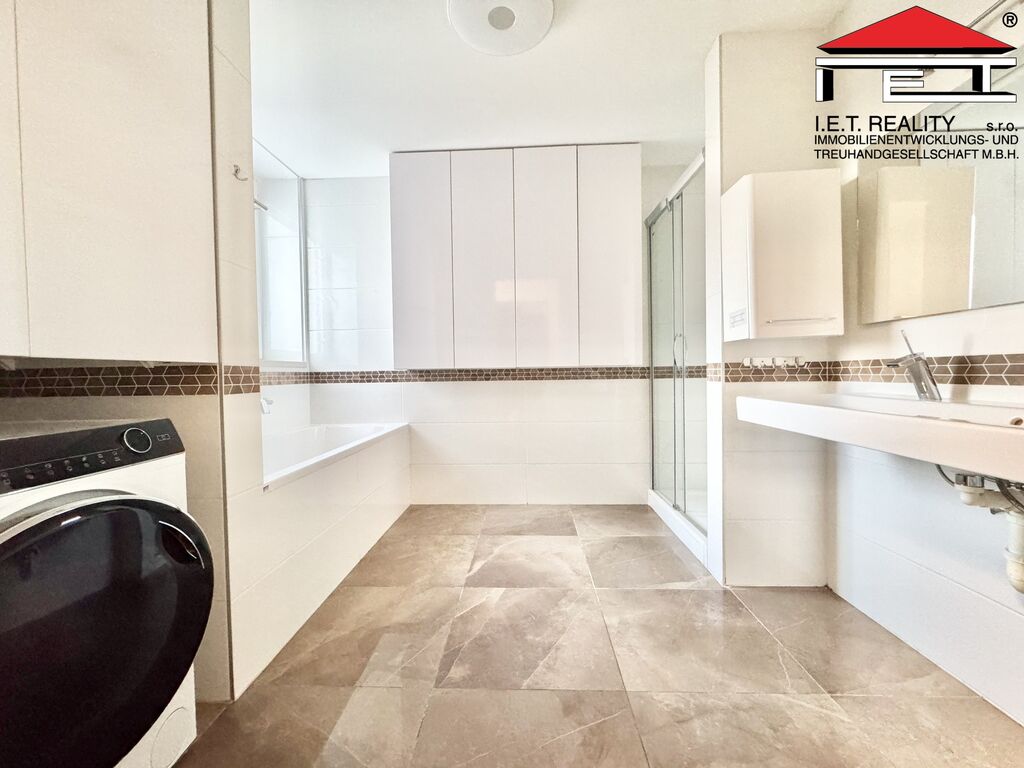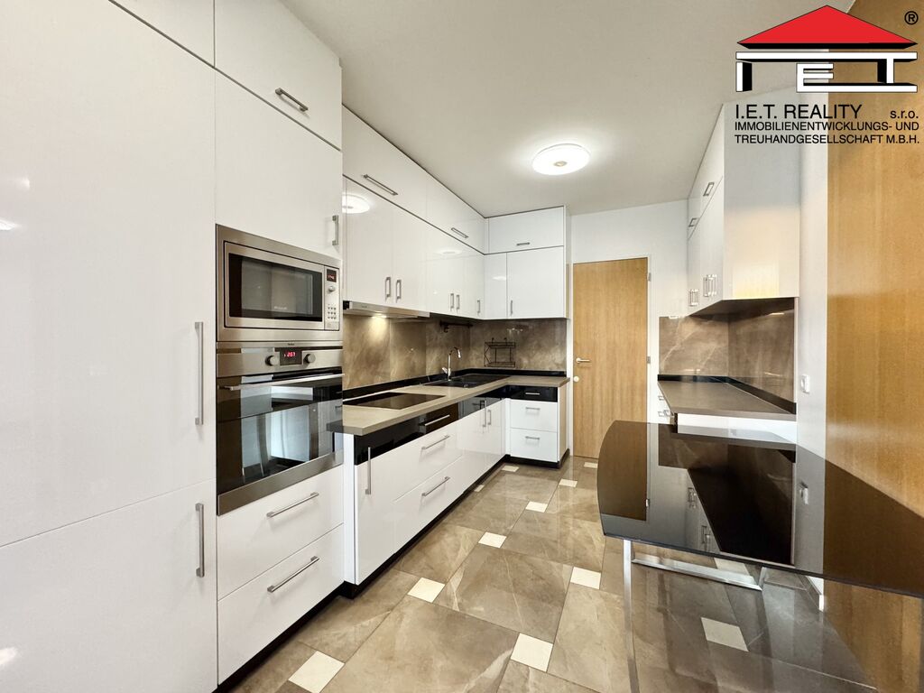 Nabízený byt je navržen pro náročnější klientelu, a proto nabízí řadu nadstandardních výhod, jako jsou tři balkóny, střešní terasa se zelení, dvě koupelny a vlastní parkovací stání v nemovitosti.