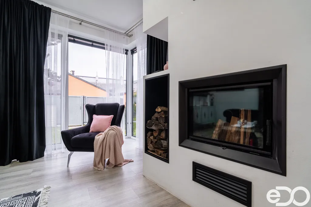 Velkým bonusem je, že se dům prodává s kvalitním a moderním nábytkem, který byl navržen na míru, takže se můžete rovnou nastěhovat bez starostí s vybavováním.