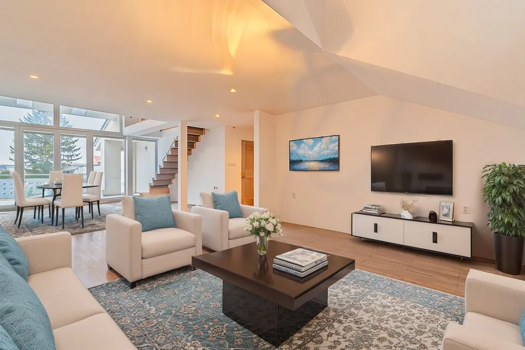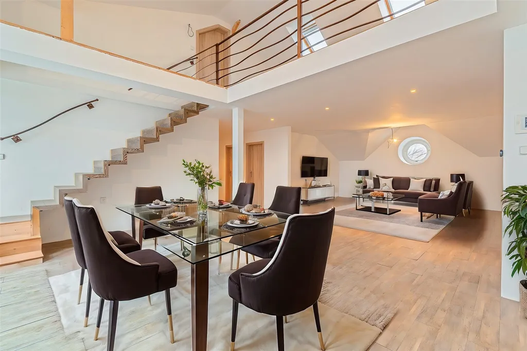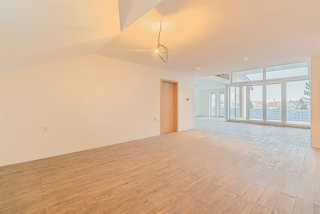 Byt má, včetně terasy, přes dvě stě metrů čtverečných, což je více místa než skýtá leckterý domek. Majestátní obývací pokoj propojený s kuchyňským koutem a terasou skýtá možnosti krásných rodinných setkání, přičemž zde budou mít i ratolesti dostatek místa k hraní. Díky umístění bytu je zde zaručené soukromí.