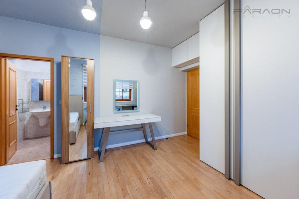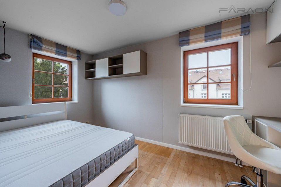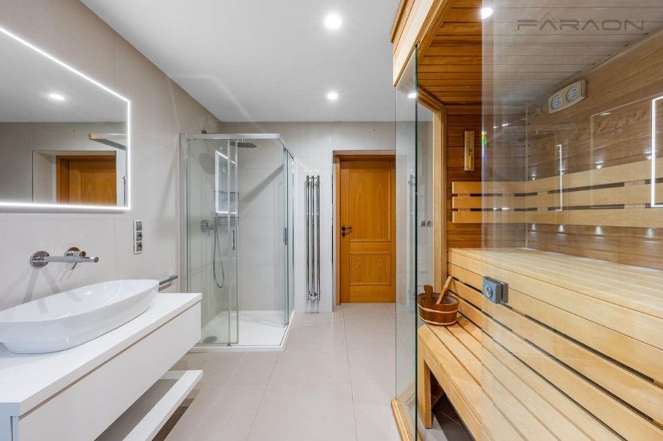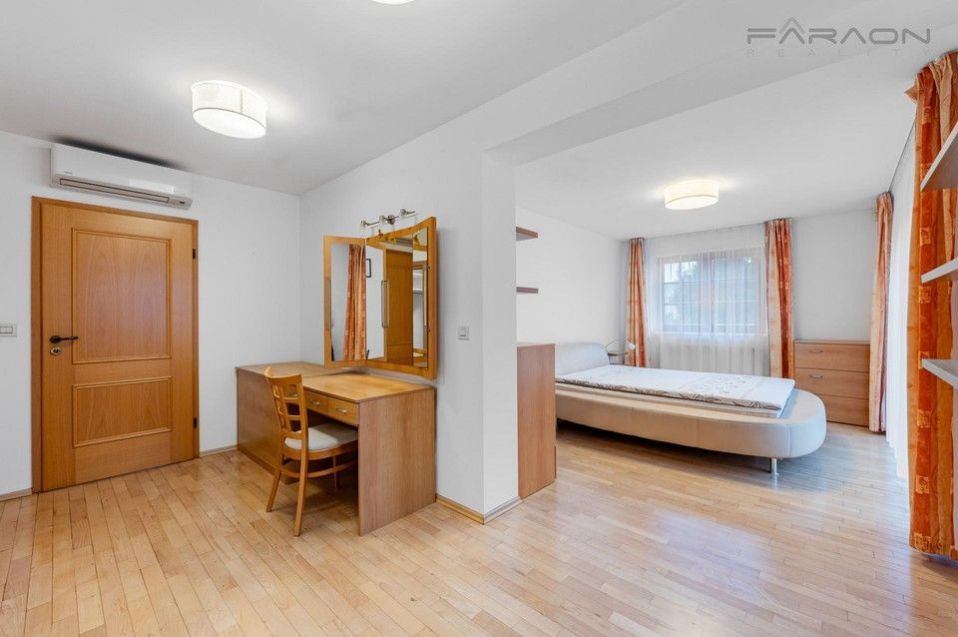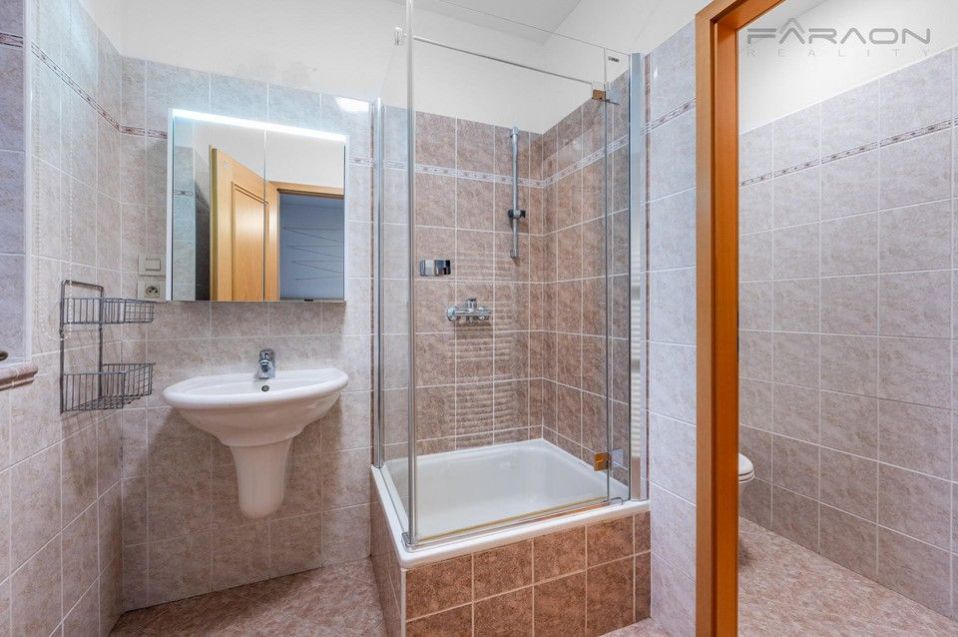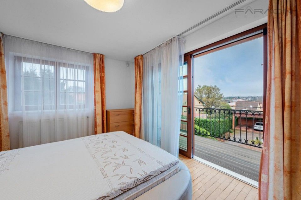 V prvním podlaží se nacházejí tři ložnice, z nichž jedna je hlavní ložnice s en-suite koupelnou, a další samostatná koupelna. K dispozici je prostorná půda. V podsklepení se nachází velká místnost s možností flexibilního využití (např. tělocvična, spa, herna apod.), dále technické zázemí a skladovací prostory.
