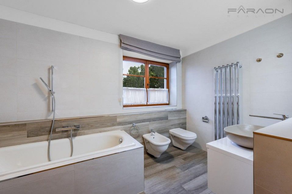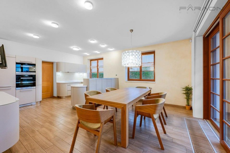 REZERVOVÁNO / Prodej samostatně stojící dvoupodlažní, podsklepené rodinné vilky o velikosti 346 m (rok výstavby 2001) s vyhřívaným zastřešeným bazénem, zastřešeným parkováním pro dvě auta a krásným rovinatým pozemkem o rozloze 942 m, orientovaným na jihozápad. Nemovitost se nachází v unikátní poloze, v těsné blízkosti centra Říčan s bohatou občanskou vybaveností a rychlou dostupností do Prahy vlakem i autem.
