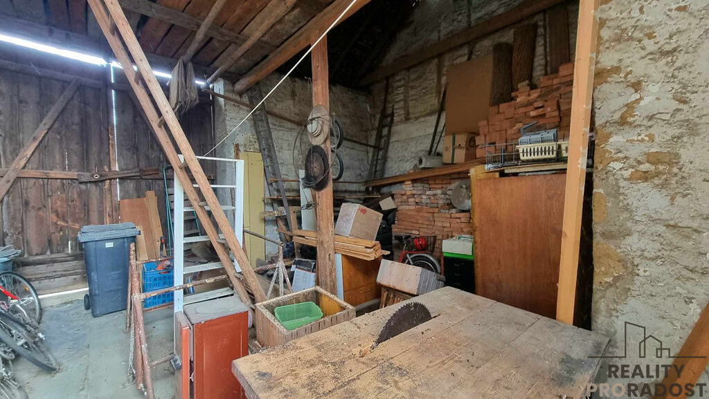 Zastavěná plocha činí 174 m², užitná plocha domu 70 m² a navazující stodola 50 m2, zatímco celková plocha parcely společně se zahradou dosahuje 720 m². K nemovitosti náleží přístavby, jako je garáž sloužící jako dílna, sklad který byl původně prádelna, černá kuchyně s udírnou, kurník s výběhem pro slepice a dva sklepy. Menší sklípek je umístěný pod domem a druhý pod dřevníkem se vstupem ze zahrady. Nechybí ani kopaná studna na zalévání zahrady nebo napuštění bazénu. Velkou výhodou je vjezd na pozemek.