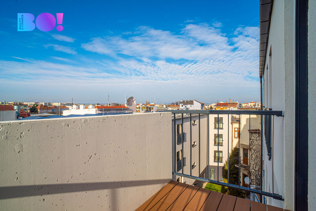 - Balkón 4 m² s výhledem do klidného vnitrobloku.