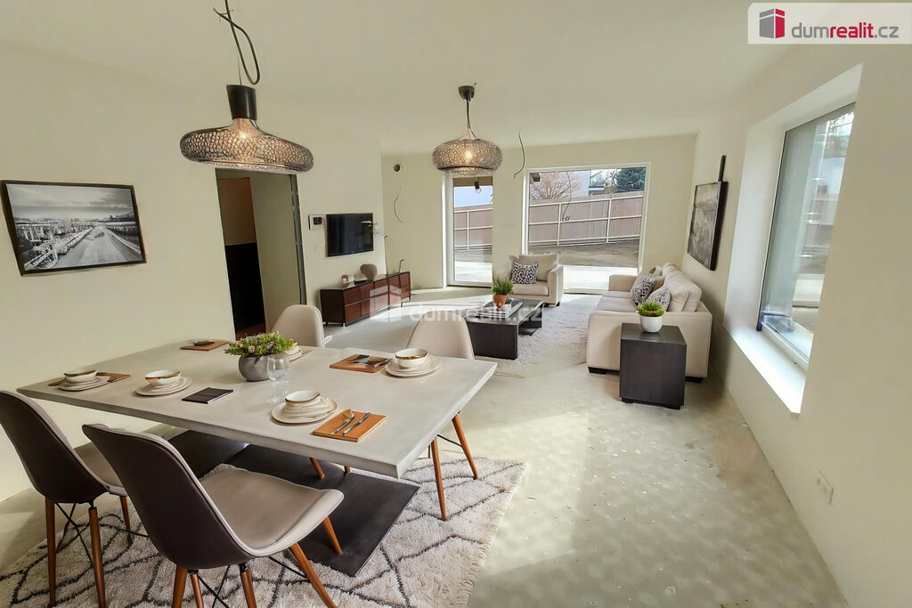 Fotografie obytných místností s nábytkem jsou vytvořeny pomocí AI vizualizace pro lepší představu osazení nábytkem.
