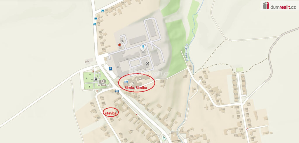 Dům leží v klidné ulici s rodinnými domy, v bezprostřední blízkosti je školka a škola, kostel, zastávka autobusu, nedaleko prodejna COOP.