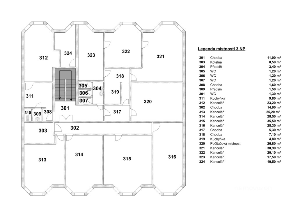 3. nadzemní podlaží - 319,3 m² (možnost vybudování luxusních a prostorných bytů).