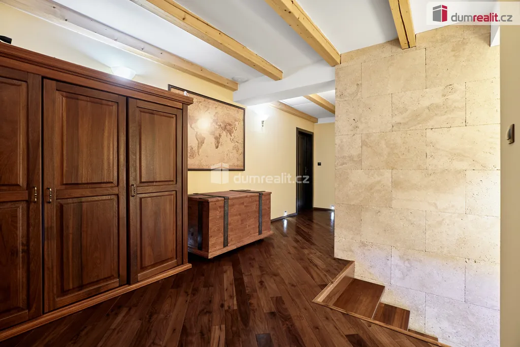 RD je zděný, částečně podsklepený, s podlahovou plochou 230 m². Dispozice domu zahrnuje prostorný obývací pokoj s krbovými kamny, kuchyň s kuchyňskou linkou na míru, jídelnu, 3 ložnice s vlastními koupelnami a WC. V přízemí je finská sauna vč. sprchy a odpočívárny, zimní zahrada s terasou a vstupem na zahradu. Dále je zde prostorná chodba vč. schodiště, zádveří, samostatné WC a technická místnost. Dům má velký půdní prostor (možnost vybudování další obytné místnosti). Vytápění domu a ohřev vody je zajištěn plynovým kotlem. Dům disponuje elektronickým zabezpečovacím systémem, finskou saunou, venkovní vířivkou a dalšími luxusními prvky. Po kompletní rekonstrukci, kdy byl kladen důraz na kvalitu použitých materiálů, provedení ale i vybavení domu, je dům připraven k okamžitému nastěhování bez dalších investic.