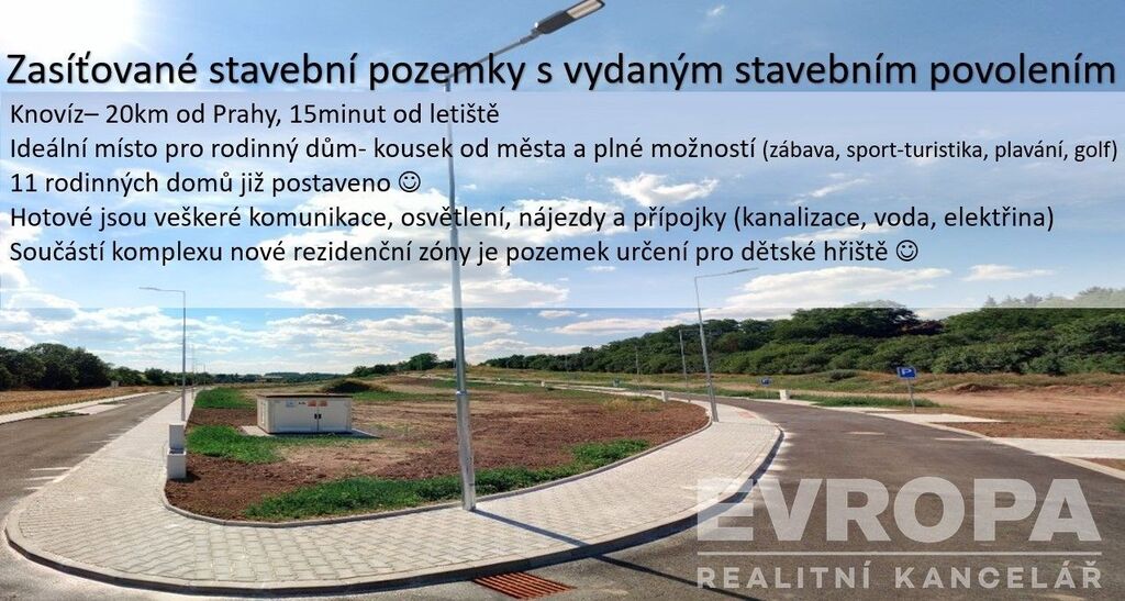 Exkluzivně nabízíme stavební pozemky v KNOVÍZi, které plynule navazují na již postavenou první etapu s 11 rodinnými domy. K dispozici je dalších 11 stavebních pozemků o rozloze 802 až 814 m2, pozemky jsou plně zasíťovány (elektřina, voda, kanalizace). Pozemky se prodávají jednotlivě, v případě zájmu o celek prosíme kontaktujte přímo makléře. V rámci projektu KNOVÍZ je vystavěna a zkolaudována kompletní infrastruktura vybudována cesta, osvětlení, nájezdy na pozemky, součástí projektu bude i dětské hřiště. Pokud hledáte místo pro rodinu a zázemí, které bude kousek za Prahou, jste u nás správně :).