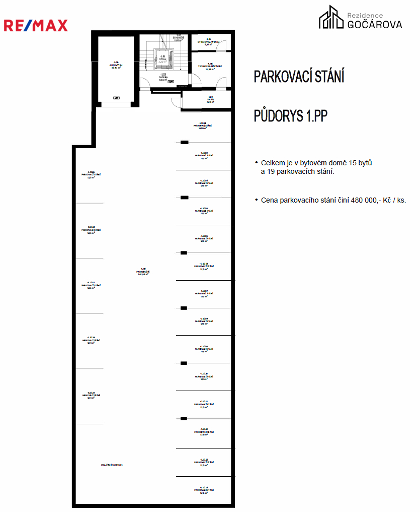 Ve výhradním zastoupení naší společností RE/MAX Future, Vám tímto nabízíme ke koupi parkovací stání umístěné v 1.PP novostavby bytového domu Rezidence Gočárova, nacházejícího se na adrese, ze které je to všude blízko - Gočárova třída, Hradec Králové - naproti OC Aupark.