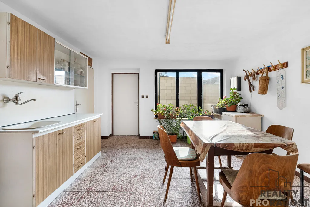 Dům je celkově podsklepený, průběžně udržovaný (nová plastová okna, nové povrchy podlah) a stále obývaný, ideální pro rodinu hledající pohodlné a praktické bydlení. Bonusem domu je krásný kvelbený sklep na víno a k němu náležící místnost na posezení a degustaci. Ve dvoře domu je také místnost na hospodářské potřeby a menší oplocený prostor, kde majitelé chovají slepičky