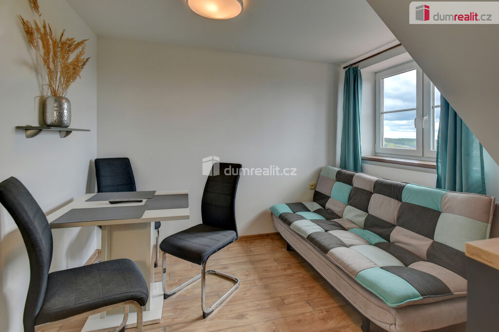 Dumrealit.cz Vám zprostředkuje exkluzivně prodej zajímavého horského apartmánu (mezonetu) 1+1 o velikosti 33 m² v obci Abertamy, okr. Karlovy Vary. Jedná se o byt ve 3. a 4.patře cihlového domu. Byt je zařízen vkusným nábytkem a vybavením. K bytu náleží prostorný zděný sklep o velikosti 8 m² a jedno vyhrazené parkovací stání. Budova z třicátých let 20. století byla kompletně zrekonstruována v letech 2021 – 2022 a je zateplena a opatřena plastovými okny. V přízemí se nachází nebytové prostory v současné době půjčovna kol a prádelna. Pro obytnou část je samostatný vchod. Ve třech nadzemních podlaží se nachází celkem 5 jednotek a společná chodba se schodištěm. V domě je veřejný vodovod, kanalizace a každá jednotka má vlastní elektro rozvaděč s elektroměrem. Z apartmánu je vzhledem k jeho poloze krásný výhled zejména na vrchol Plešivec. Vzhledem k tomu, že před zadáním do inzerce nebyl předložen PENB, je tento byt v souladu s platným zákonem zařazen do energetické třídy G. Ev. číslo: 650310.