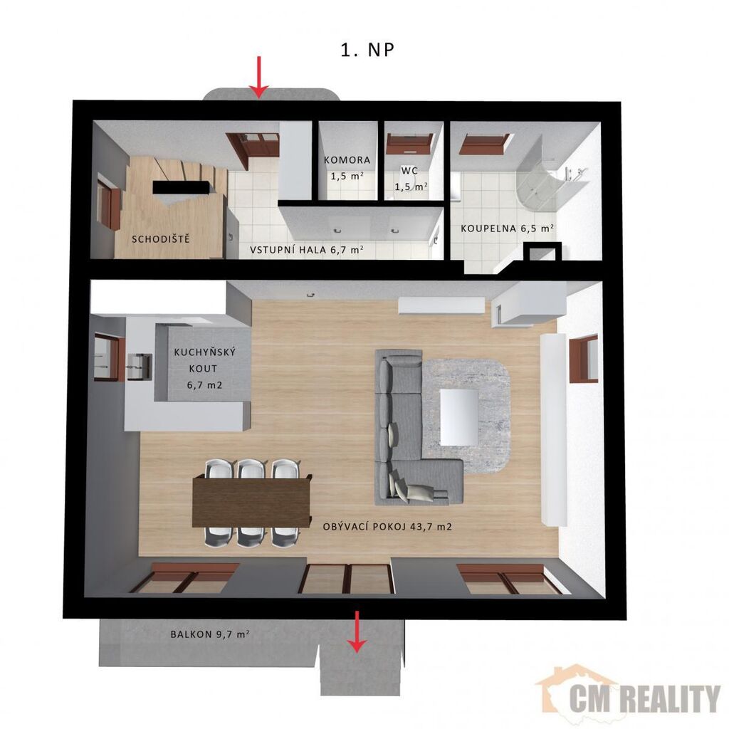 Plocha pozemku celkem 757 m2, z toho 93 m2 zast. plocha domu, 23 m2 garáže a 641 m2 zahrada. Podlahová plocha domu 198 m2, obestavěný prostor 678 m3.