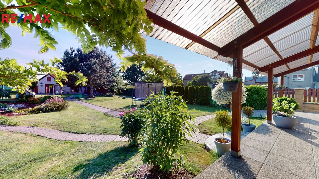 Za domem je vybudovaná okrasná zahrada, včetně zděného grilu, s udírnou, zahradního jezírka a kopané studny.