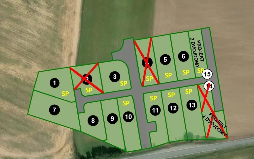 pozemek č. 15 - 876 m2 - 6.000.000,- Kč (pro 2 dvojdomy) (vyřízené st. povolení)