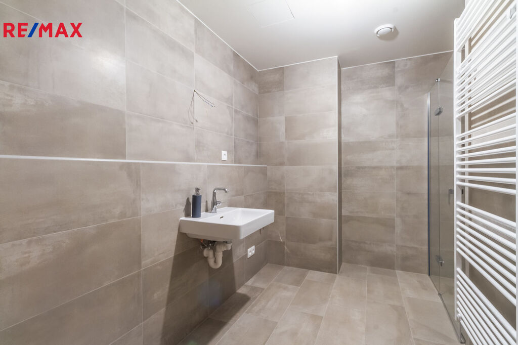 - Prostorná koupelna se sprchovým koutem, kde se ranní spěch mění v klidné chvíle pro sebe.
