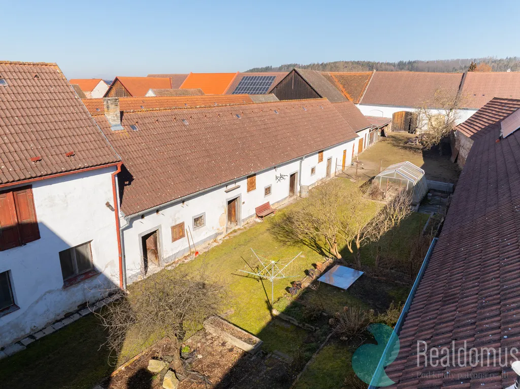 Uzavřený dvůr nabízí příjemné prostředí pro relaxaci, koupání v bazénu a další aktivity. Zahrada v zadní části nemovitosti je ideálním místem pro zahradničení a chov hospodářských zvířat. Vzhledem k celkové dispozici a umístění představuje nemovitost perfektní příležitost pro trvalé bydlení či podnikatelské aktivity.