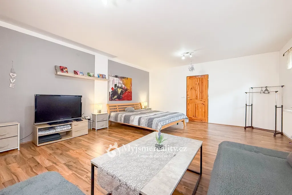 Část interiéru byla kompletně zrekonstruována a je připravena k okamžitému nastěhování. Zbývající prostory nabízejí možnosti pro rozšíření obytné části nebo vytvoření dalších ubytovacích jednotek, což umožňuje využití nemovitosti pro krátkodobé pronájmy a zajištění atraktivního výnosu.
