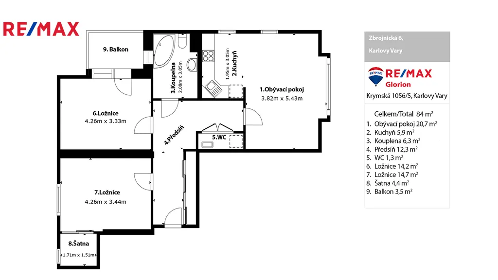 Byt disponuje dvěma ložnicemi. Hlavní ložnice má prostornou šatnu, která nabízí dostatek úložného prostoru a přispívá k celkové organizaci bytu. Druhá ložnice má vstup na balkon, což vytváří ideální místo pro ranní kávu nebo odpočinek.