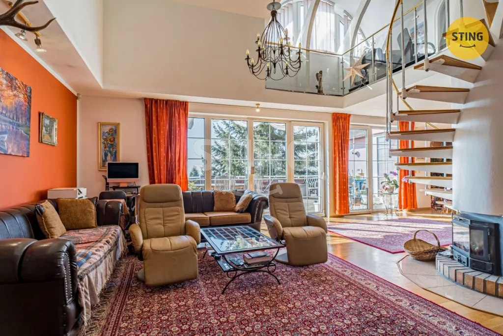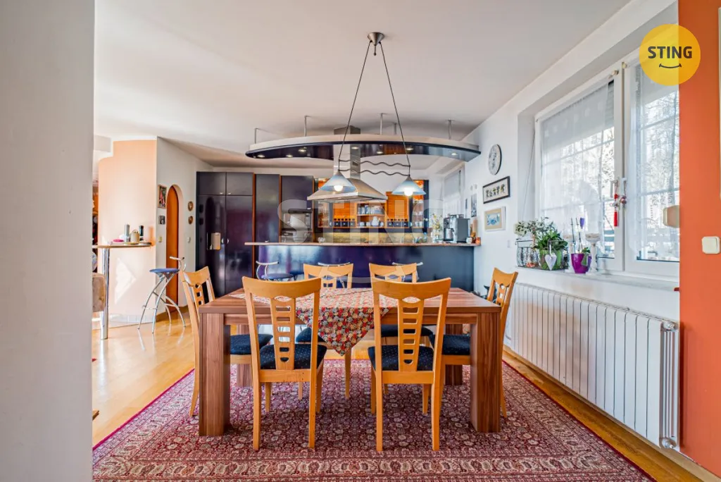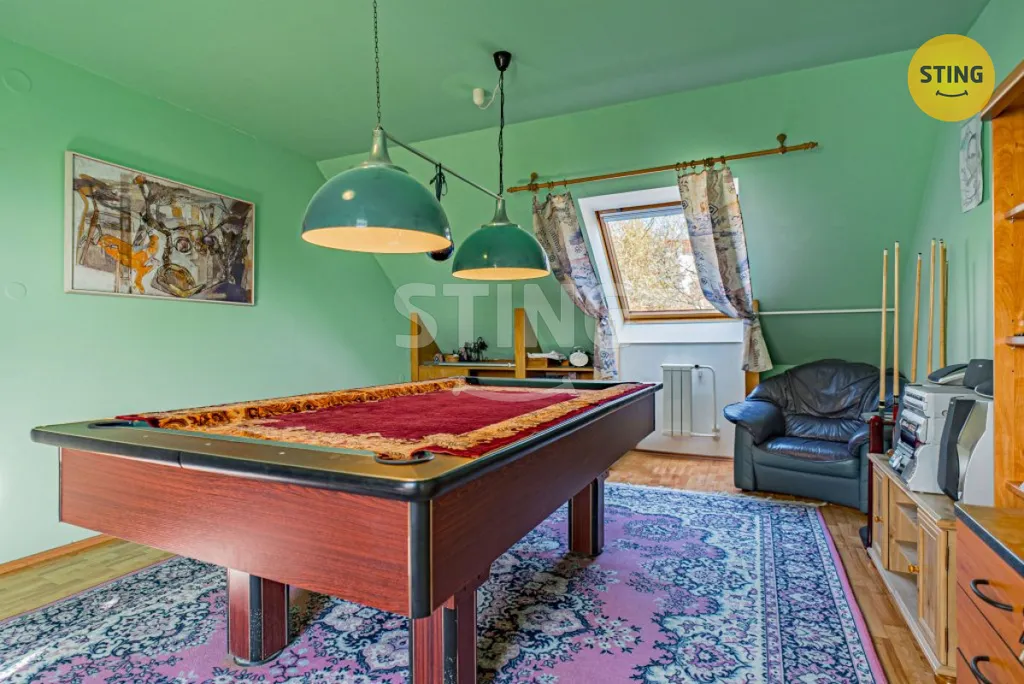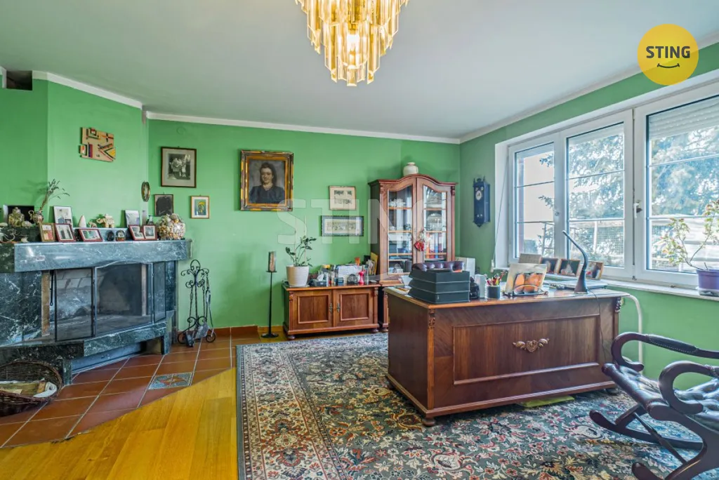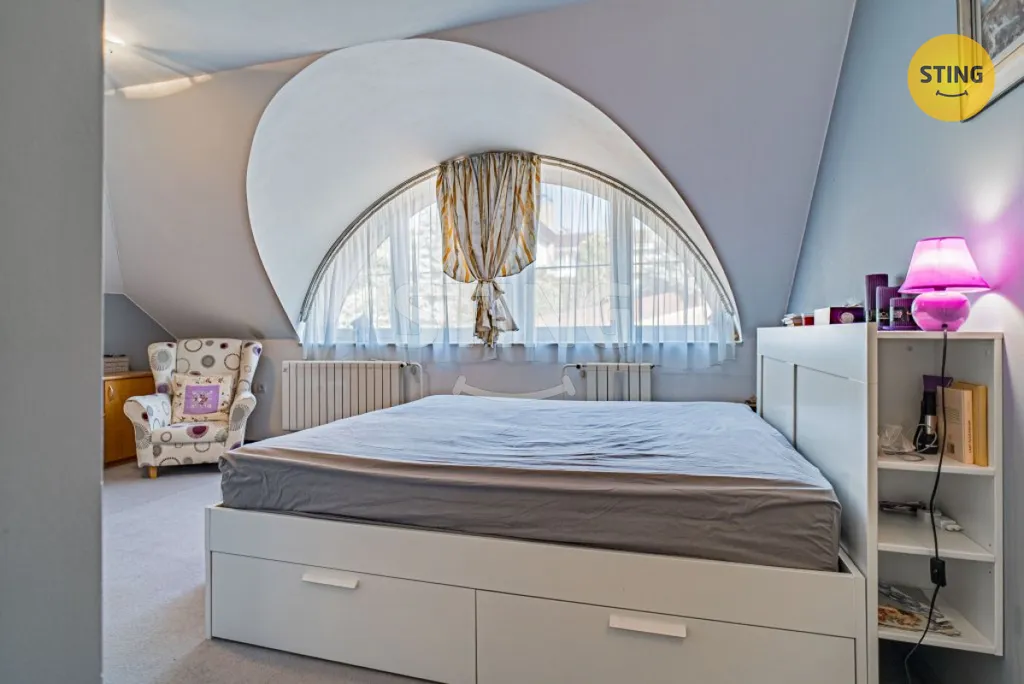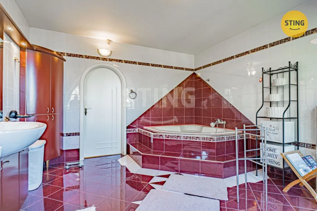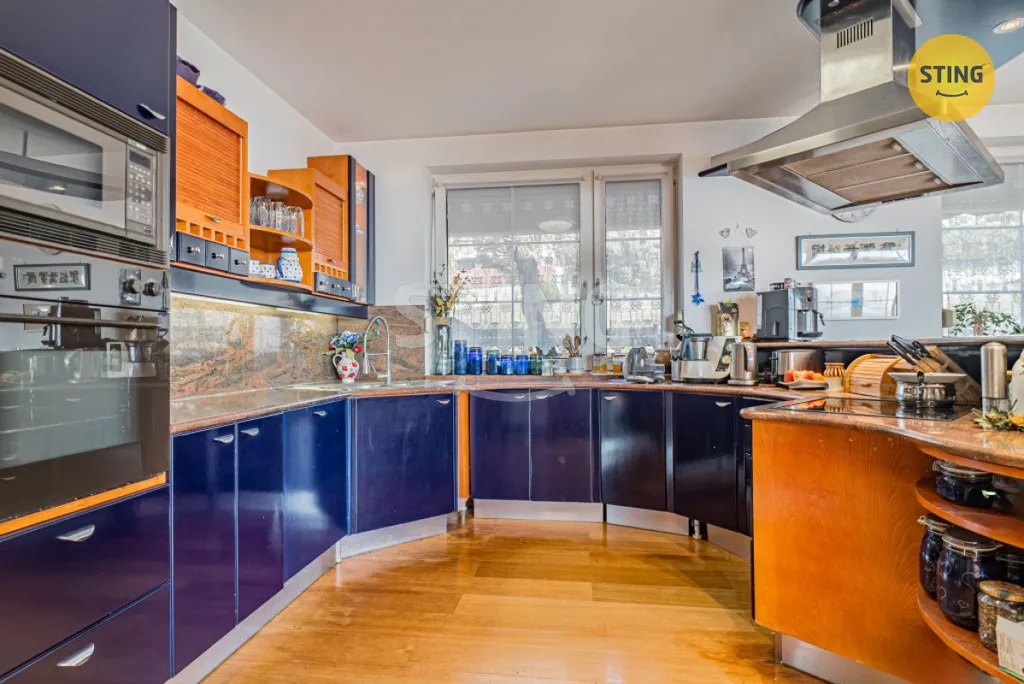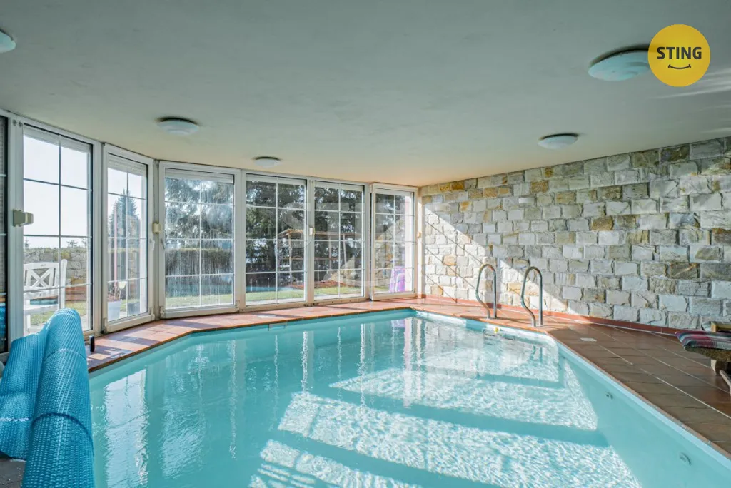 Dům o dispozici 7+kk, s vnitřní užitnou plochou 438 m², se rozprostírá ve třech podlažích a nabízí nestandardní komfort. Relaxaci a odpočinek si můžete vychutnat ve wellness zóně, kde na vás čeká prostorná sauna a vnitřní bazén (40 m³, protiproud), který můžete snadno propojit se zahradou díky posuvným dveřím. Navíc obýváte dům s odděleným bytem 1+kk, ideálním pro hosty nebo jako kancelář. Pro parkování je k dispozici garáž pro 2 osobní automobily a 4 parkovací stání na vjezdu.