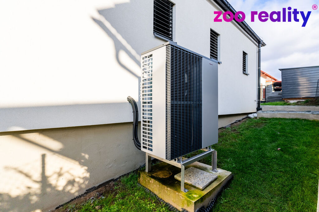 O vytápění a ohřev vody se stará nové tepelné čerpadlo v kombinaci s elektrickým boilerem. Teplo je po domě řešeno podlahovým vytápěním, které je v obou patrech. Energetická náročnost domu je B. Splachování toalet je řešeno dešťovou vodou z retenční nádrže. Na všech oknech domu jsou venkovní rolety, které v případě potřeby zajistí úplné soukromí.