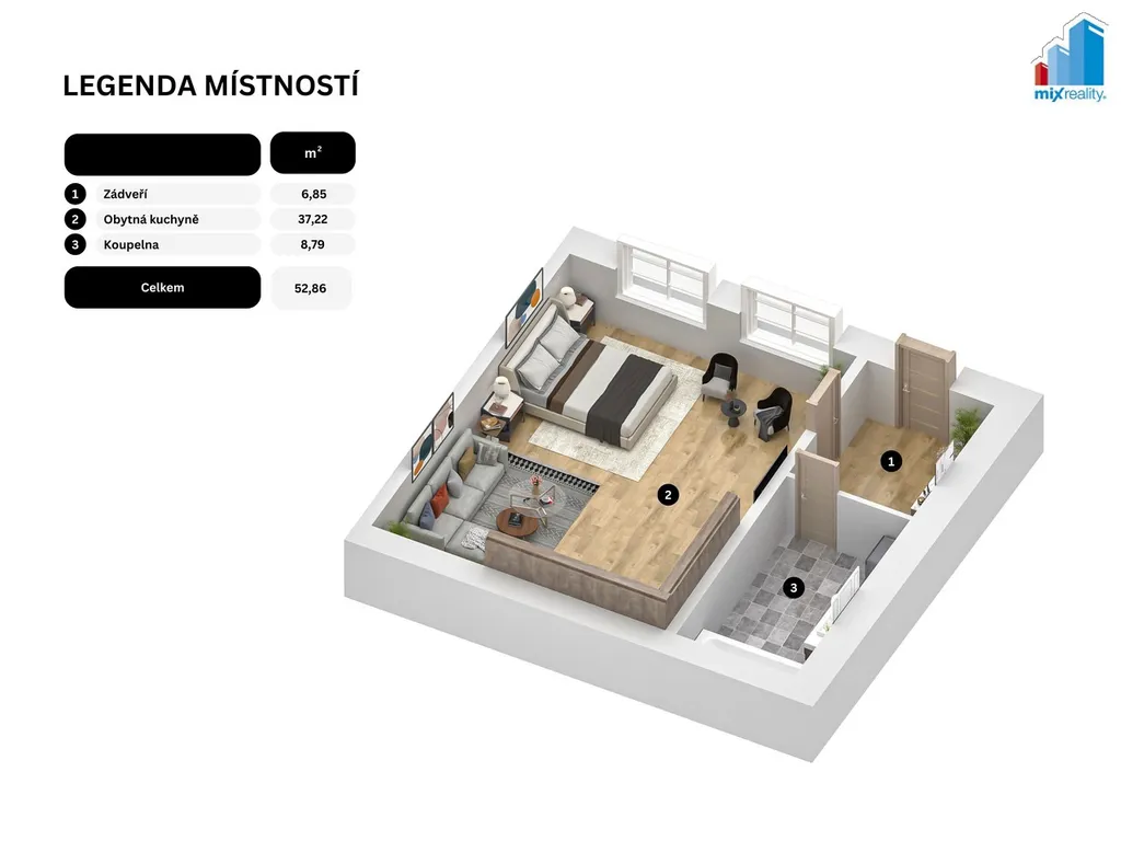 Hledáte skvělou investici, anebo nové bydlení? Naše realitní společnost vám exkluzivně nabízí prodej prostorné bytové jednotky 1+kk v novostavbě bytového domu, který se nachází v centru města Chotěšova, na ulici Plzeňská. Byt je v současnosti ve fázi před výstavbou. Bytová jednotka o rozloze 52,86 m² se bude nacházet v přízemí cihlového domu a bude skládat z předsíně, kuchyně s obývacím pokojem, koupelny se sprchovým koutem, či vanou a toalety. K bytu bude náležet parkovací místo a podíl na příjezdové cestě. Vytápění bytu bude zajištěno podlahovým systémem s termostaty, teplá voda bude zajišťována elektrickým bojlerem. Byt bude vybaven plastovými okny s trojskly, kvalitními podlahami a sanitárními prvky. Obec Chotěšov nabízí kompletní občanskou vybavenost a výbornou dopravní dostupnost díky ČSAD a ČD. V blízkosti se nachází škola, školka (5 minut chůze), obchody a další služby. V případě zájmu vám rádi pomůžeme s vyřízením hypotečního úvěru. Vřele doporučujeme!