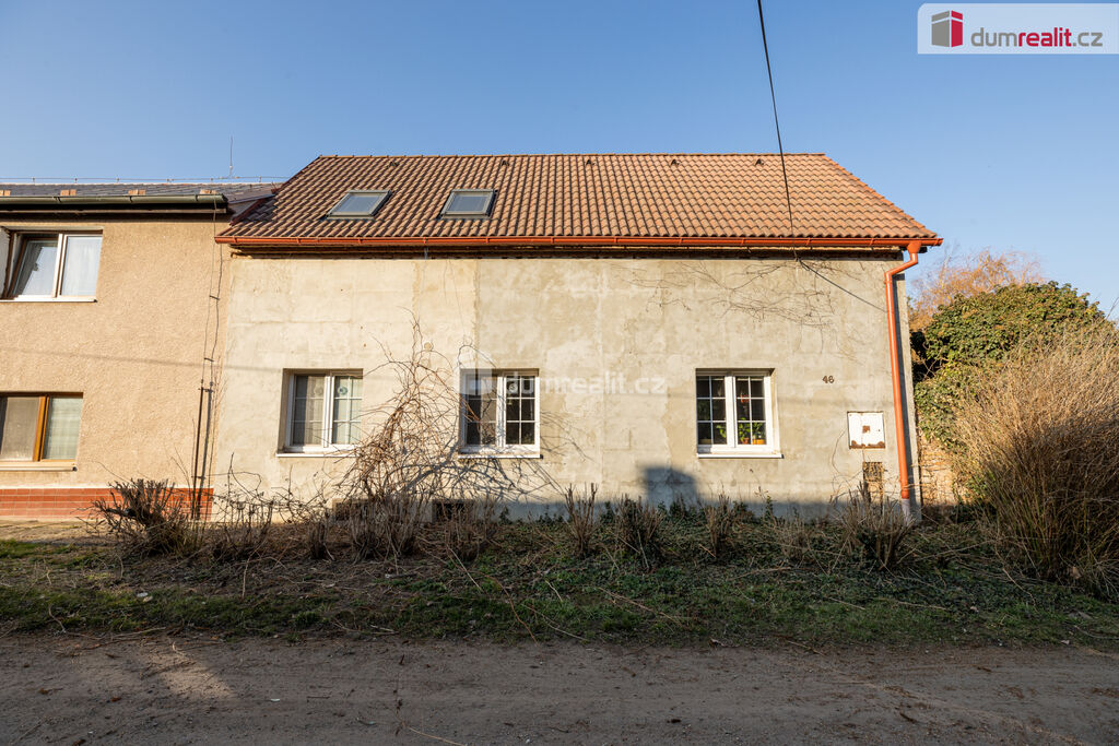 V patře jsou další tři pokoje, prostorná hala, komora a toaleta. Z největšího pokoje je krásný výhled do zahrady a do kraje, kde se na tyčí hora Říp.