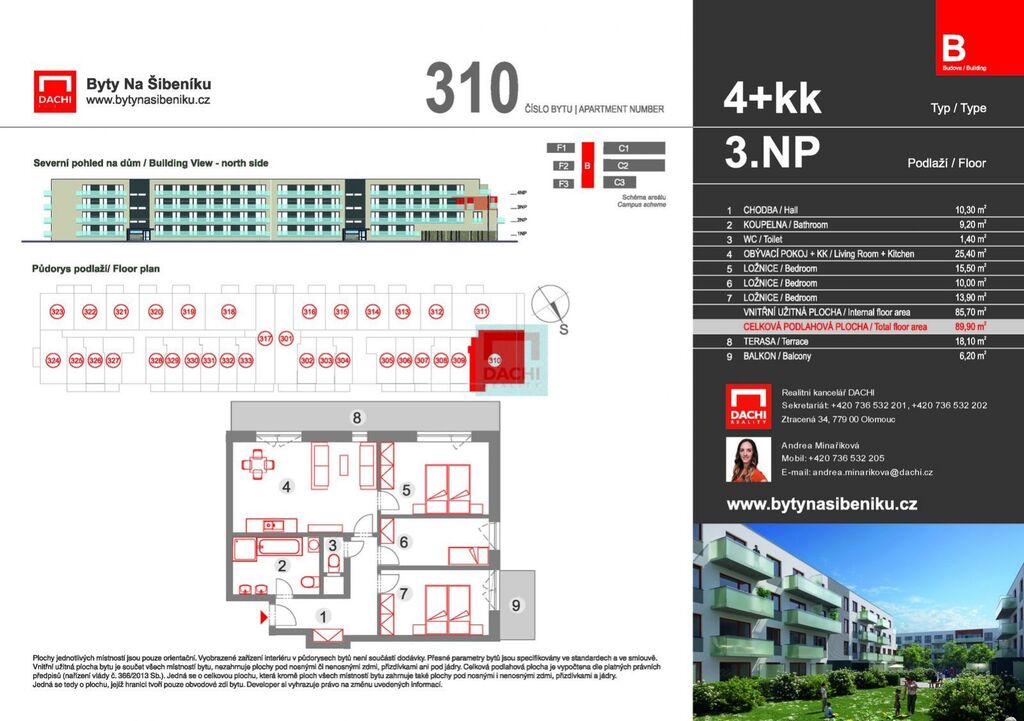 Navazujeme na úspěch první etapy a přinášíme vám jedinečnou příležitost pořídit si nový domov v atraktivním projektu Byty Na Šibeníku. DACHI, prodejce a partner developera, vám v rámci druhé etapy nabízí ke koupi moderní byt 4+kk (č. 310) o ploše 90 m s balkonem a terasou 23 m. Byt se nachází ve 3. nadzemním podlaží nového bytového domu B, který je součástí šestipodlažního objektu se čtyřmi nadzemními a dvěma podzemními podlažími.