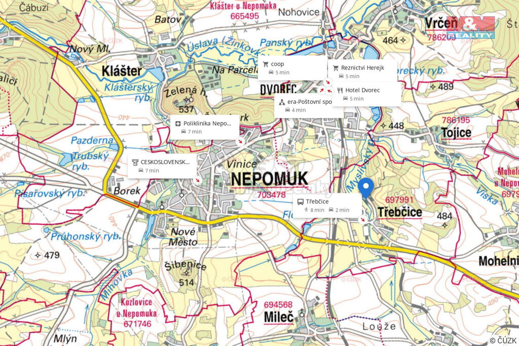 Útulný rodinný dům po celkové rekonstrukci v malebném přírodním prostředí obce Třebčice u Nepomuka. Dům je dvoupodlažní, v 1.NP najdeme vstupní chodbu, obývací pokoj s kuchyňským koutem, koupelnu s rohovou vanou a ložnici. Ve 2.NP jsou pak dva neprůchozí pokoje v nádherném podkrovním designu. Nemovitost je zrekonstruována, jsou zde nové rozvody elektřiny, vody, odpadů, nová zateplené střecha, kuchyňská linka aj. Výhodou jsou nízké provozní náklady (cca 4,000 Kč/měsíčně) na bydlení. Vytápění je zajištěno vkusnými topnými tělesy v mramorovém provedení + ve spodní ložnici jsou také funkční kamna na tuhá paliva. Velkou výhodou jsou také další vedlejší stavby - garáž, dílna, venkovní posezení i bazén. Na vlastním, a z části obecním pozemku je vrtaná studna s dostatkem vody a je zde napojení na kanalizaci. Místo Vám poskytne přímo pohádkovou přírodní scenérii a klid, veškerá občanská vybavenost je v městě Nepomuk, které je vzdáleno cca 4 min.autem.