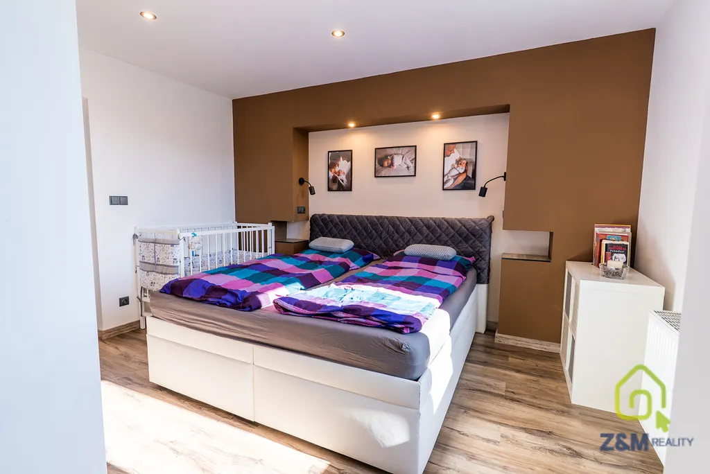 Dům je vybaven moderním interiérem , s krásnou stylovou kuchyní ,okna jsou plástová v barvě antracitu vyztužena ocelovým rámem a trojskla vnitřní dveře jsou obložkové bez falcové. Hlavní okna jsou opatřeny žaluziemi CLIMAX 90 Z, každá žaluzie je řízena radiovým signálem v každé místnosti samostatně a celý okruh lze řídit i z jedné časti.