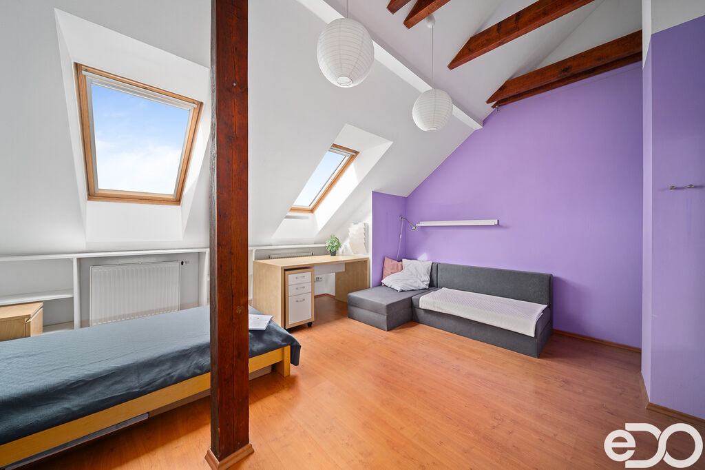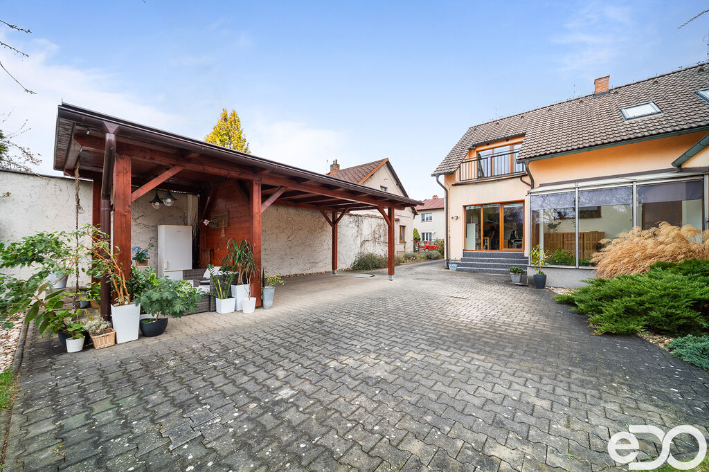 Vytápění v domě je variabilní. Hlavní možností zdroje tepla včetně ohřevu teplé vody je plynový kotel s radiátory a rozvody v celém domě. Navíc se nachází v přízemní koupelně podlahové vytápění. K pohodovému bydlení a zvýšení komfortu přispívá klimatizace v podkroví, kterou je možno využívat celoročně. Voda je obecní, na pozemku je i studna. Příjezd k objektu z hlavní komunikace vede mezi sousedními rodinnými domy. Vlastní parkování je možné přímo před domem nebo na dvoře skrze automatickou bránou. Celou prostornou zpevněnou plochu za domem je možno využít až pro 3 os. auta. Místnosti v domě, jejichž velikost a rozmístění nadchnou každého zájemce a zejména toho, který zvažuje vyměnit byt za dům v klidné části krajského města a přitom pár minut od centra Proto hledáme náročného zájemce, který využije celý potenciál domu. Pokud vás nemovitost zaujala, zavolejte a domluvíme si prohlídku.
