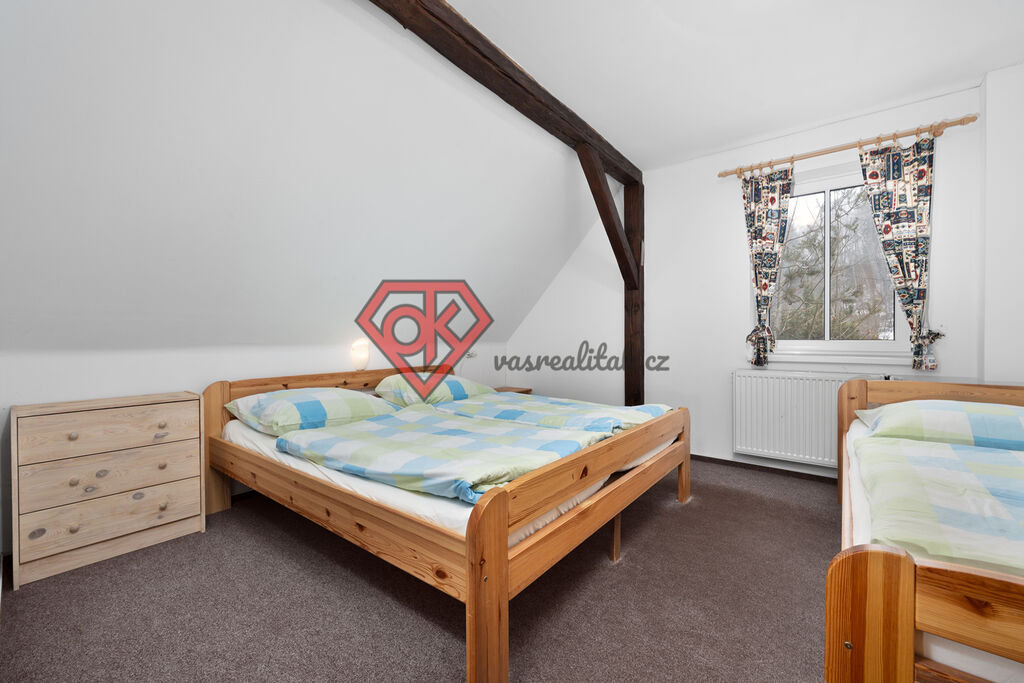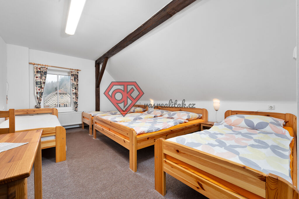 V prvním patře je celkem 8 pokojů, které dohromady čítají 23 lůžek, z čehož každý pokoj má samostatnou koupelnu s toaletou, která prošla povedenou rekonstrukcí.