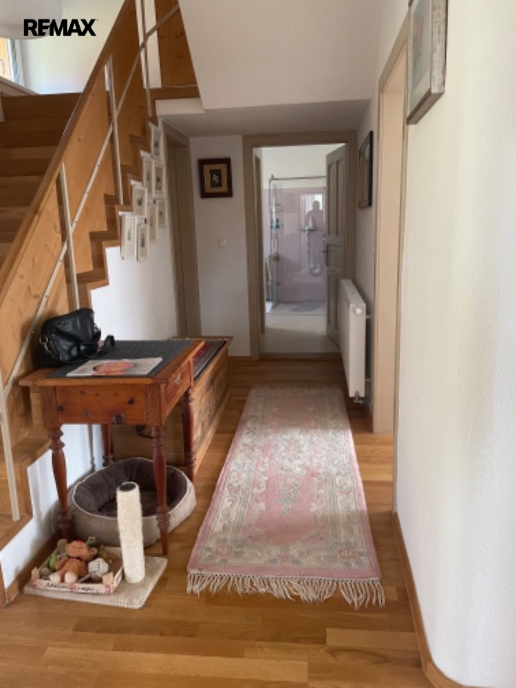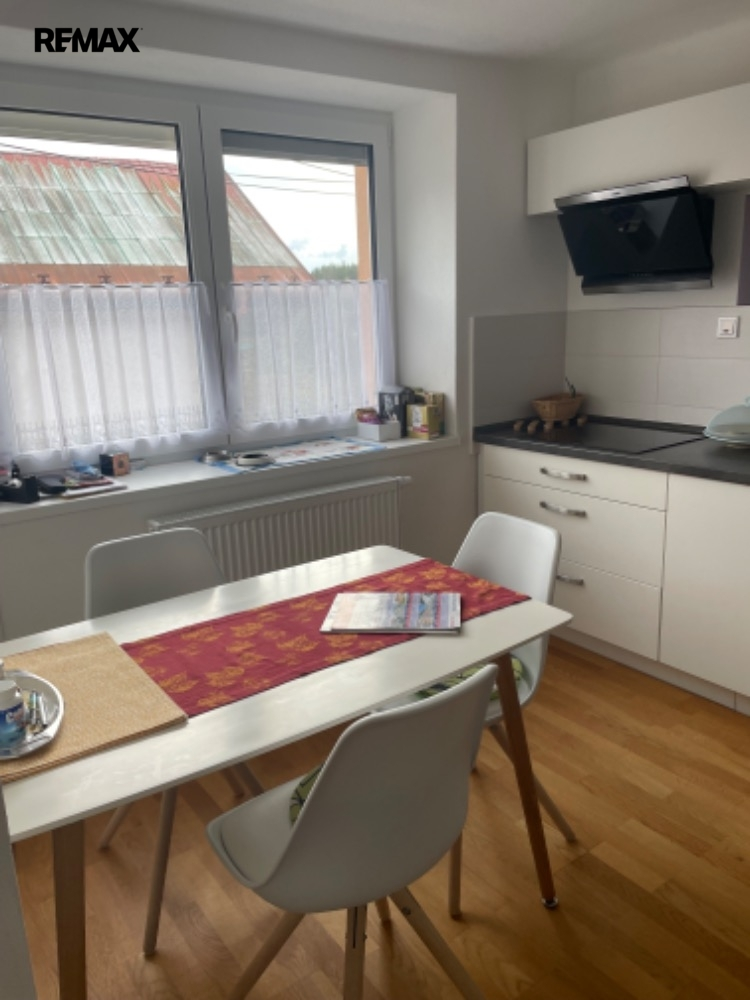 Kuchyň je prakticky vybavena spotřebiči značky Oresi, včetně sklokeramické desky, horkovzdušné trouby, digestoře, myčky a vestavěné lednice. V obytných prostorách v přízemí je dubová podlaha, zatímco v patře dominují selská prkna, což dodává domu charakter a teplou atmosféru.