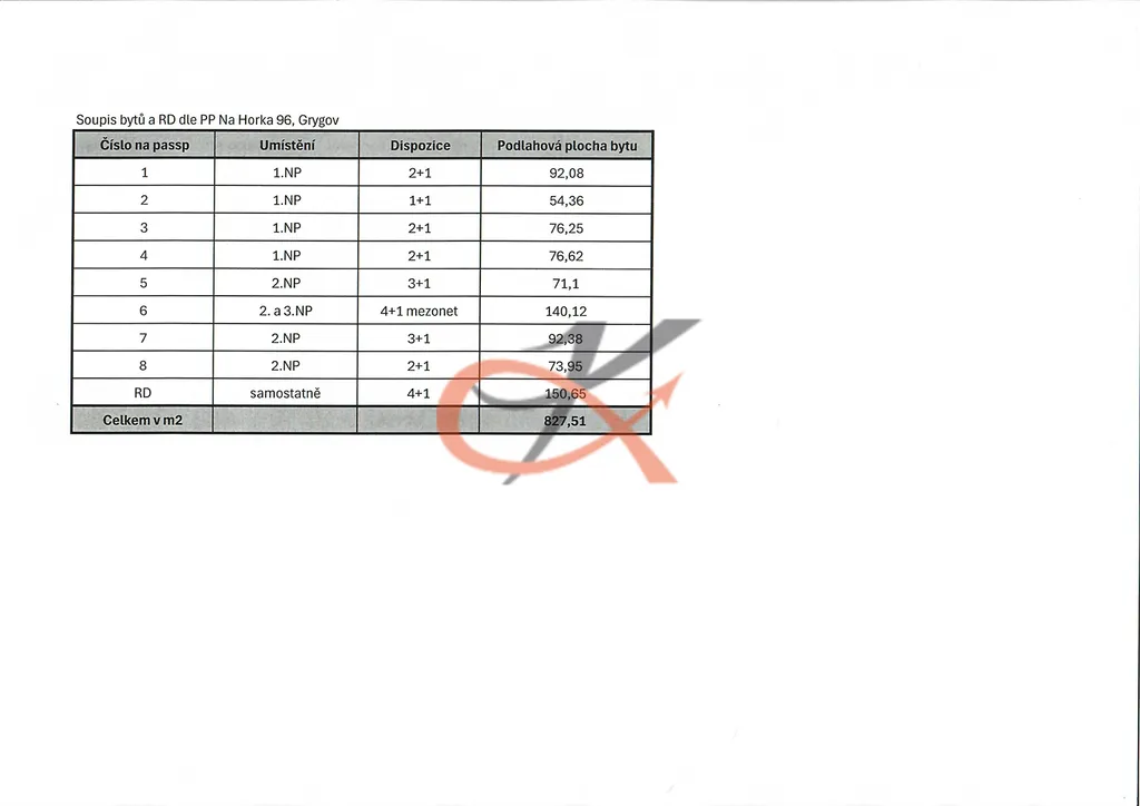 Byty - 1.NP - 4 byty, 2.NP - 3 byty , 2. a 3. NP - prostorný byt 4+1 (mezonet); prostorná podlahová plocha od 54 m2 do 140 m2