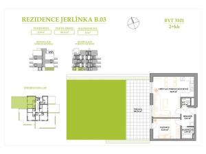 Byt o dispozici 2+kk se nachází v 1. NP bytového domu č.3 o podlahové ploše 52,88 m2.