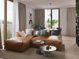 V bytě je prostorný obývací pokoj s obytnou kuchyní a přístupem na terasu o velikosti 106,36 m2. Dále jednotka nabízí prostornou ložnici, předsíň, koupelnu a samostatné WC. K bytu je v ceně přiřazena sklepní kóje, která se nachází v suterénu objektu.