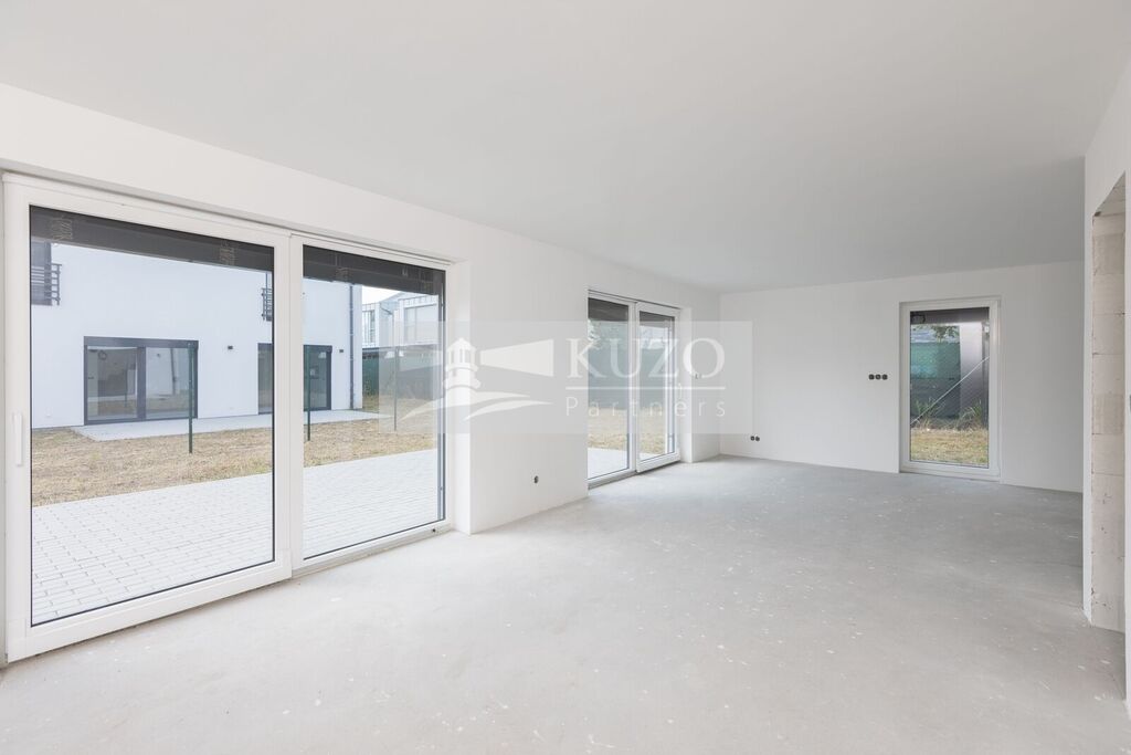V přízemí přes vstupní předsíň se nachází prostorný obývací pokoj s kuchyňským koutem o výměře skvělých 43 m2, dále koupelna se sprchovým koutem a toaletou, technická místnost a prostorná garáž o výměře téměř 29 m².