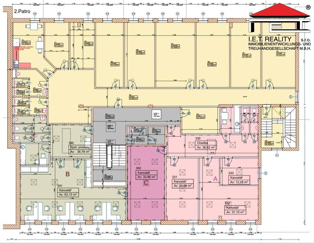 První část nabízených kanceláří o velikosti od 12 m² po 31 m² s cenou nájmu od 236 po 249 Kč/m² a cenou služeb od 1107 Kč po 2715 Kč/měsíc je možné pronajmout jednotlivě a mají společné sociální zázemí s kuchyňkou. Součástí je vlastní zabezpečovací systém. V případě zájmu je možné pronajmou také jako celek za zvýhodněnu cenu (176 m² kanceláří + sociální zázemí) .