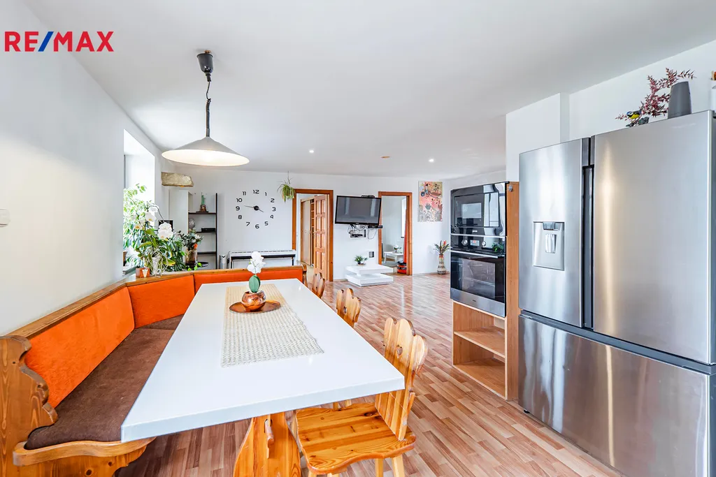 Objekt se skládá ze dvou částí ve tvaru „L“. Původní část domu prošla kompletní rekonstrukcí v roce 2003, druhá část byla postavena z Porothermu před cca 13 lety. Obě části mají dvě nadzemní podlaží a prostornou půdu, přičemž v nové části je možné půdu upravit na další obytné prostory.