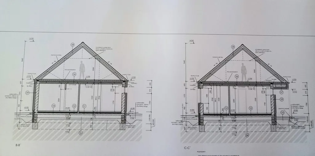 Dispozice: vstupní předsíň(5,18m2), samostatné WC(2,35m2), tech.místnost(6,58m2), koupelna s WC(8,91m2), obývací pokoj s kuch.koutem (33m2), spíž (3,23m2), chodba (11m2), 3 ložnice (13,15m2, 9,25m2, 8,8m2), šatna (4,72m2)+úložný prostor na půdě.