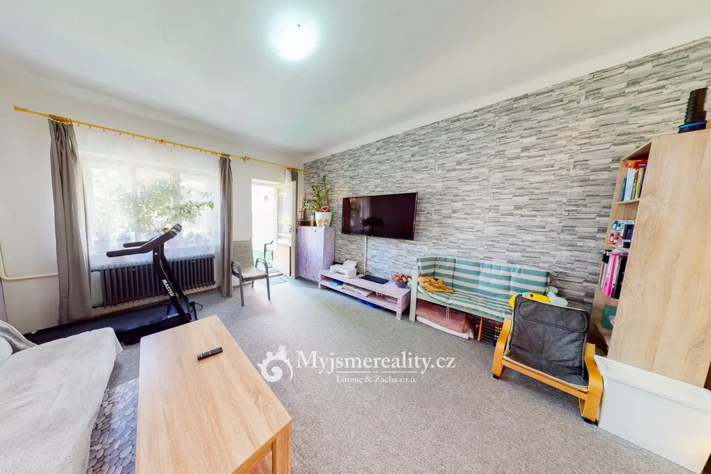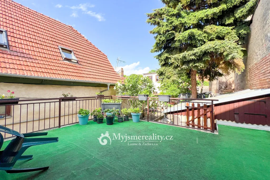 Zrekonstruované druhé podlaží nabízí samostatnou bytovou jednotku 3+1 s terasou do zahrady. Dispozice zahrnuje prostorný obývací pokoj, dvě ložnice, komoru a koupelnu se sprchovým koutem a toaletou. Kuchyň, která tvoří srdce celého bytu, je chytře propojená se vstupní chodbou a je přirozeným středobodem domácnosti.