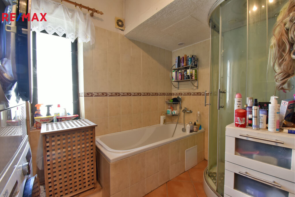 Vytápění a ohřev vody zajišťuje ústřední topení s radiátory (plynový kotel z roku 2007)