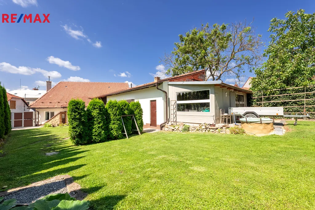 Ve dvorním traktu se nachází samostatný apartmán o dispozici 1+kk s kuchyňskou linkou a koupelnou se sprchovým koutem, umyvadlo, WC, vytápění samostatným plynovým kotlem. Vjezd do dvora je vraty z hlavní ulice, kde můžou parkovat až 2 auta a garáž o výměře 16m2. Vedle garáže se nachází místnost 10m2 a dílna o výměře 17m2 pro kutily. Dům je částečně podsklepený, kde se nachází technické zázemí domu pro vytápění (ohřev vody, zajišťuje plynový kotel a kotel pro tuhá paliva ( pelety) - náklady na rok 20000 Kč, velmi nízké provozní náklady. V druhé části se nachází klenbový sklep o výměře 7,2m2. RD byl zcela zrekonstruován, z ulice je RD zateplený izolační deskovou vatou, nová fasáda, podlahy, rozvody, technické zázemí, sociální zázemí, střecha původní v dobrém technickém stavu. Vchod do RD je z ulice i ze dvora. Dům má krásnou okrasnou zahradu s posezením ve vnitrobloku (oáza klidu). Zdi jsou obloženy SDK. Ze zadní části je vstup do sadu, který má 2106m2 . V sadu se nachází ovocné stromy, keře i zde možnost záhonů pro pěstování. Na pozemku se nachází zahradní domek na ukládání nářadí a potřeb pro údržbu sadu. Dle územního plánu je tento pozemek v navrhované ploše Br. - bydlení v rodinných domech. Současné náklady na bydlení RD je 1400 Kč elektřina, 400 Kč plyn měsíčně, voda 200 Kč ročně, RD má vlastní studnu, ale je i napojený na řád. V obci Podomí se nachází mateřská školka, základní devítiletá škola, obchod s potravinami, restaurace.