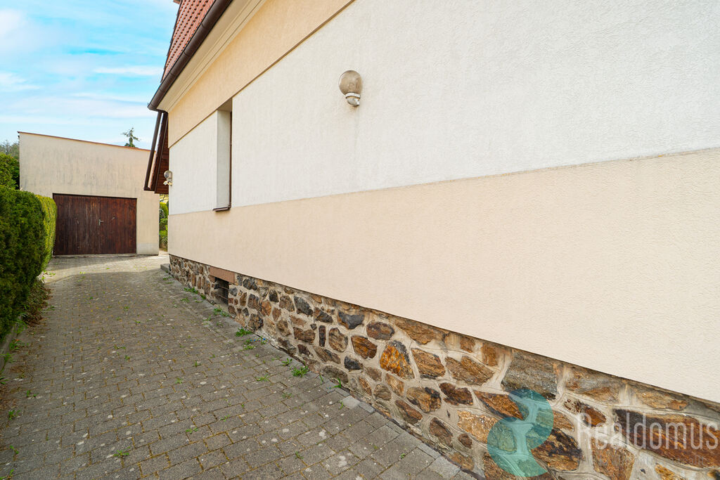 K domu náleží nádherná udržovaná zahrada s praktickým skleníkem, romantickým zákoutím pro opékání buřtů, dílnou pro kutily a garáží pro pohodlné parkování.