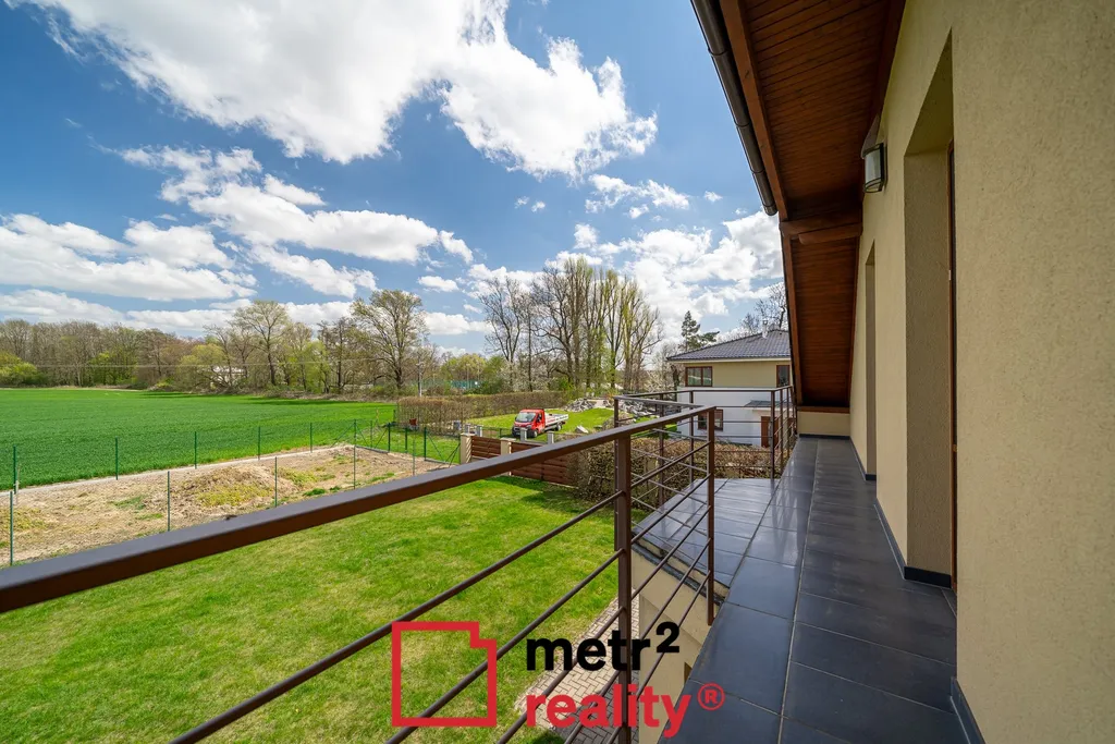 hledáte pohodlný život v hotovém velmi dobře udržovaném cihlovém rodinném domě v klidné lokalitě v Bystrovanech na ul. Polní? Ve výhradním zastoupení klienta Vám nabízíme ke koupi dvoupodlažní rodinný dům postavený v roce 2009 s dispozicí 4+1 a užitnou plochou 152 m². Dům nabízí vše, co rodina potřebuje, v přízemí je obývací pokoj (26,7 m²) s krbem s tepelnými průduchy v obývacím a jednom pokoji v patře, kuchyně s jídelnou (21,7 m²) s vestavnými spotřebiči zařízenou linkou. Dále vstupní prostor, zádveří, hala. Nechybí koupelna se sprchovým koutem a WC. Výhodou je zastřešená terasa (26,4 m²) přístupná francouzským oknem z jídelny. V podlaží jsou 3 pokoje (18,4 m², 14 m² a 12,7 m²) z toho dva se společným balkonem (10,7 m²) a třetí se šatnou (3,6 m²). A samozřejmě koupelna s vanou i sprchovým koutem. Příjemným komfortem je samostatné WC. V obou obytných podlažích je podlahové topení. Dům je celopodsklepený (77 m²) a v pozemních prostorech se nachází posilovna, prádelna a kotelna s plynovým kotlem se zásobníkem na 60 l. vody a výkonem 3,5-20 kW, sklad a garáž pro motorky, čtyřkolky či jiná terénní vozítka (s automatickými garážovými vraty a prudším sklonem vjezdu). K dispozici jsou parkovací místa v ulici. Rozlehlá zahrada 620 m² je opatřena automatickým závlahovým systémem. Dům je zařízený, připravený k nastěhování.