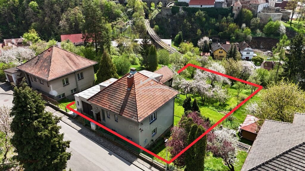 Tento zděný dům z cihel, zkolaudovaný přibližně v roce 1964, se nachází na klidném a slunném místě mimo hlavní silnici. Zahrada je mírně svažitá a orientovaná na jih, což zajišťuje sluneční paprsky po celý den a nádherný výhled na hrad i celé město (viz poslední 3 fota). V podkroví je navíc letní místnost a možnost vybudování dalších 2 obytných místností.