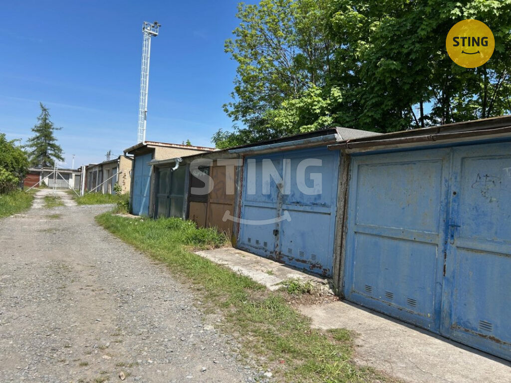 Garáž má zastavěnou plochu 18 m2, je z betonového monolitu s rovnou střechou, je zde rovněž rozvod elektřiny, momentálně nepřipojený. Vrata jsou plechová zabezpečená dvěma zámky.