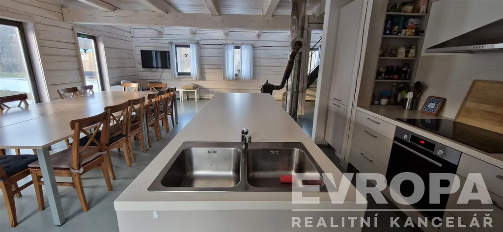 Dům disponuje celkovou plochou 260 m² a pozemek o rozloze neuvěřitelných 70 485 m², což přináší ideální soukromí a prostor pro realizaci vašich rekreačních snů. Hlavní budova je srubového typu ve finském stylu, postavená s důrazem na kvalitu a komfort. V přízemí se nachází předsíň, garáž, koupelna, obývací pokoj s kuchyní. V patře se nachází koupelna, 4 ložnice a podkrovní prostor o velikosti 100 m2. Součástí domu je sauna a vyhřívaný venkovní bazén, které se snadno stanou vaším oblíbeným místem pro relaxaci.
